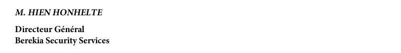 C’est avec une grande fierté et un sens profond de la responsabilité que je vous accueille sur le site internet de la société BEREKIA SECURITY SERVICES. En tant que Directeur Général, je souhaite vous partager notre vision et notre engagement envers la sécurité.